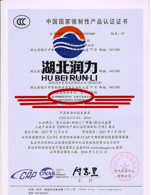 大运自卸式垃圾车3C证书